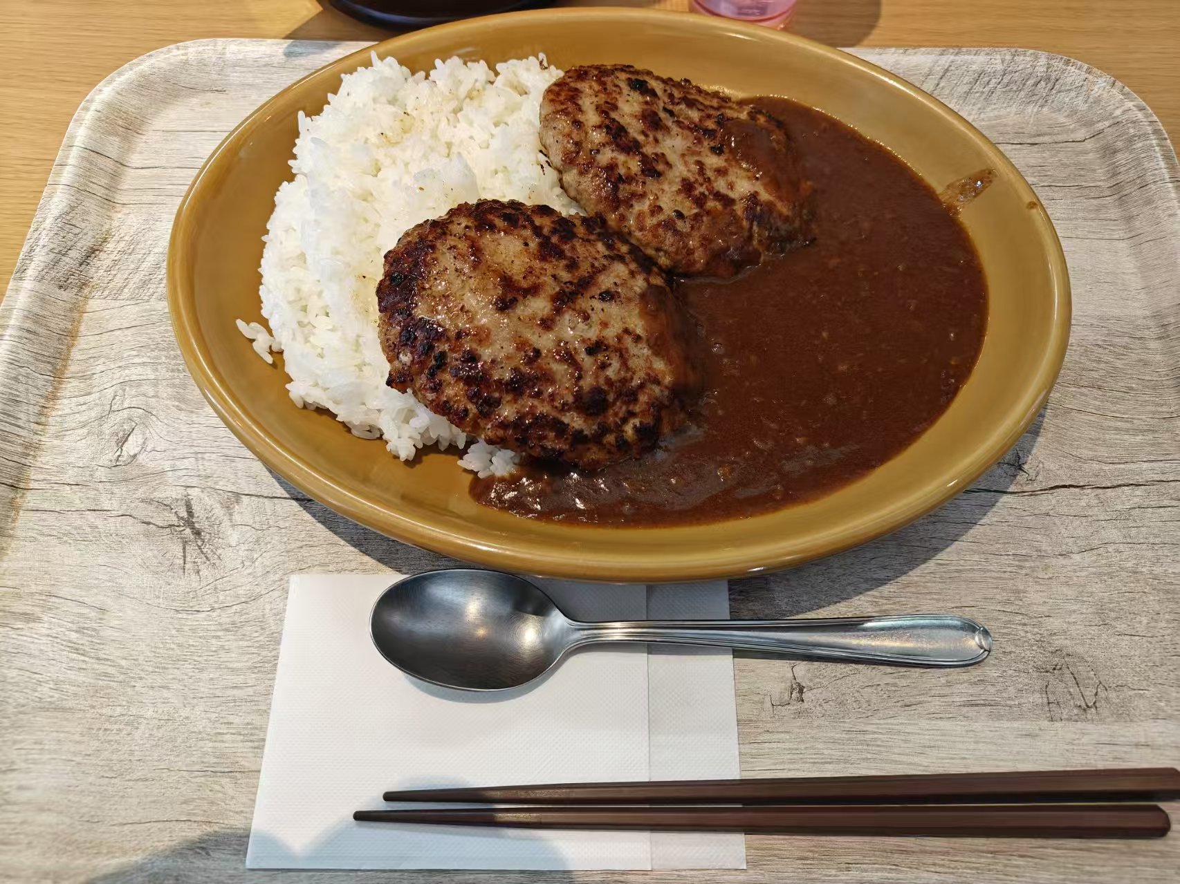 桶川駅附近也有提供咖喱的快餐店(店名忘记了。以后要好好收好領収書备考……)。本套餐的特点是多汁的汉堡肉和咸味咖喱,值得一试。
