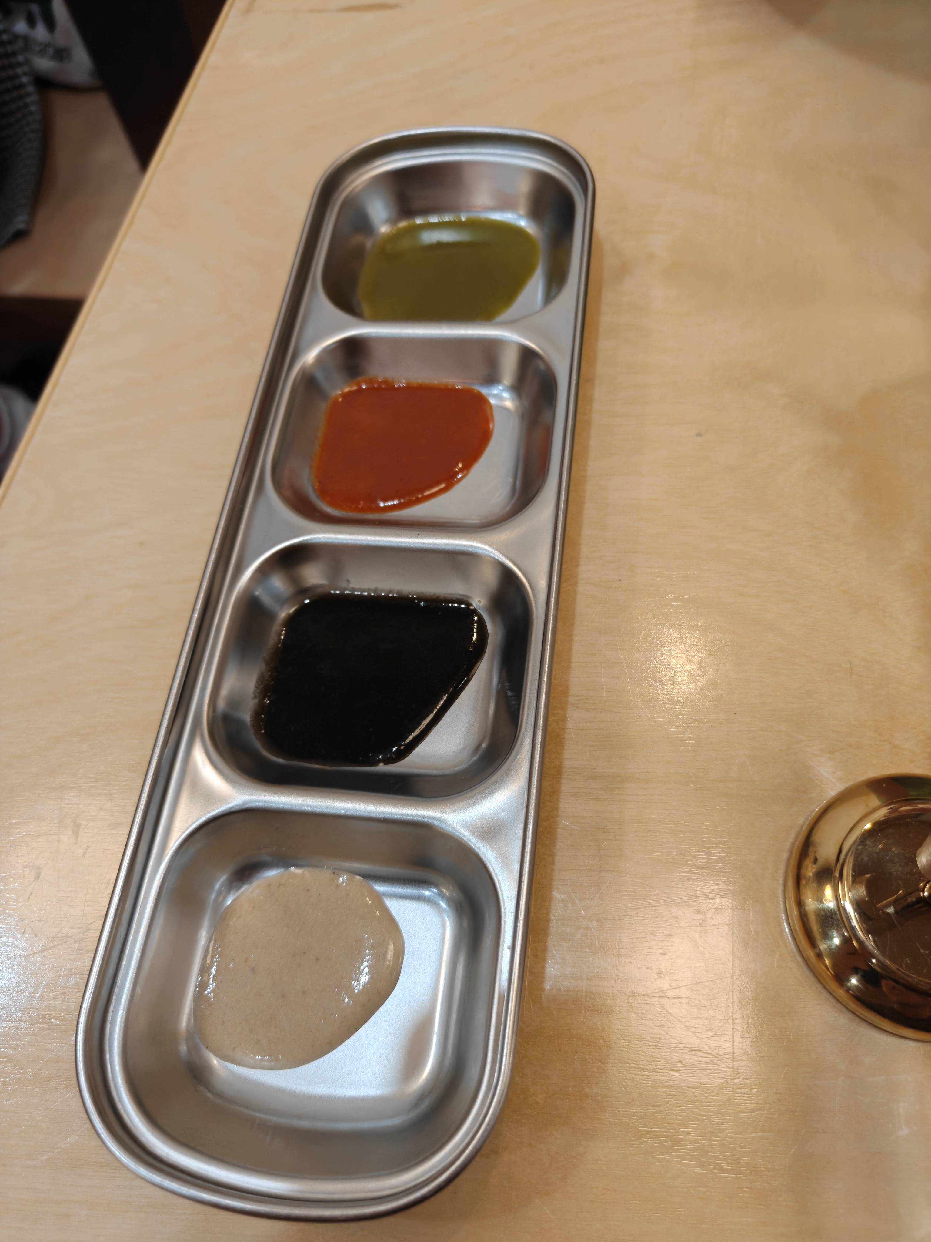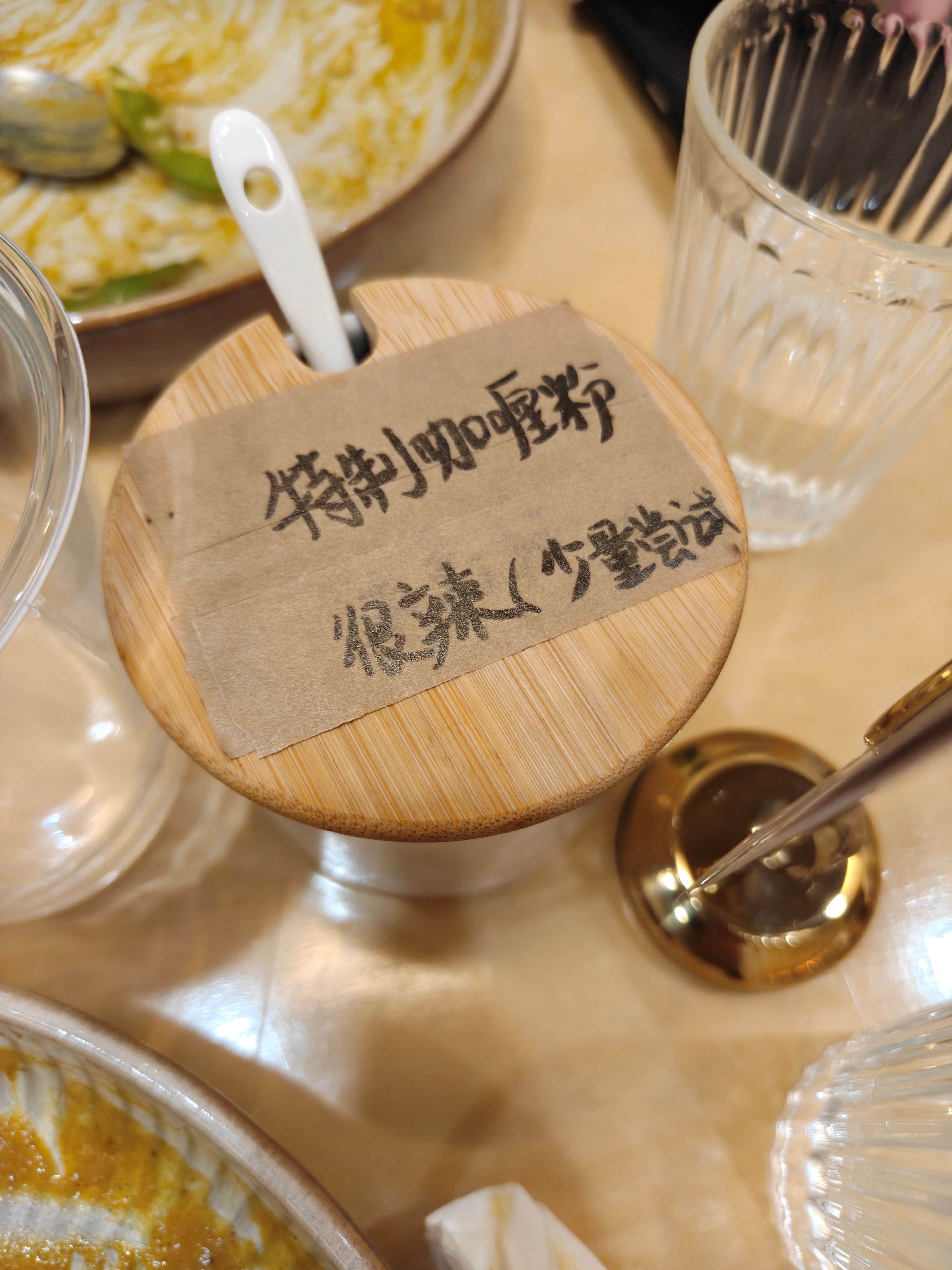 这一盘黄咖喱内部的亮点是酸黄瓜和口感绵密的红薯,如果不点饮品的话整体上可能会感觉到偏干。辣度中等。特别提示的是桌上的咖喱粉辣度极高。慎重少量添加。